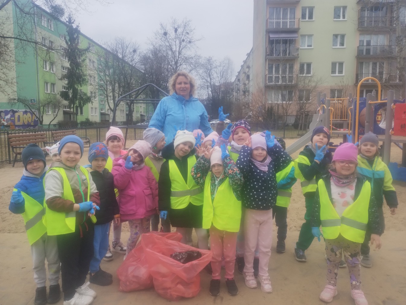 Dziś nasza grupa wzięła udział w akcji Galante Sprzątanie, której celem było pokazanie dzieciom jak dbać o swoje najbliższe otoczenie. Dzieci chętnie zaangażowały się w zbiórkę śmieci.