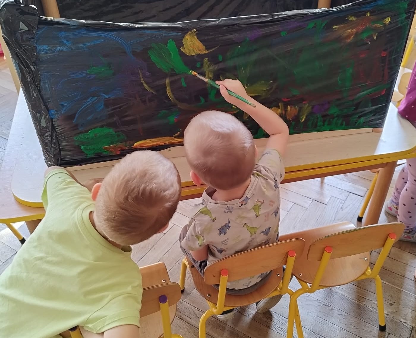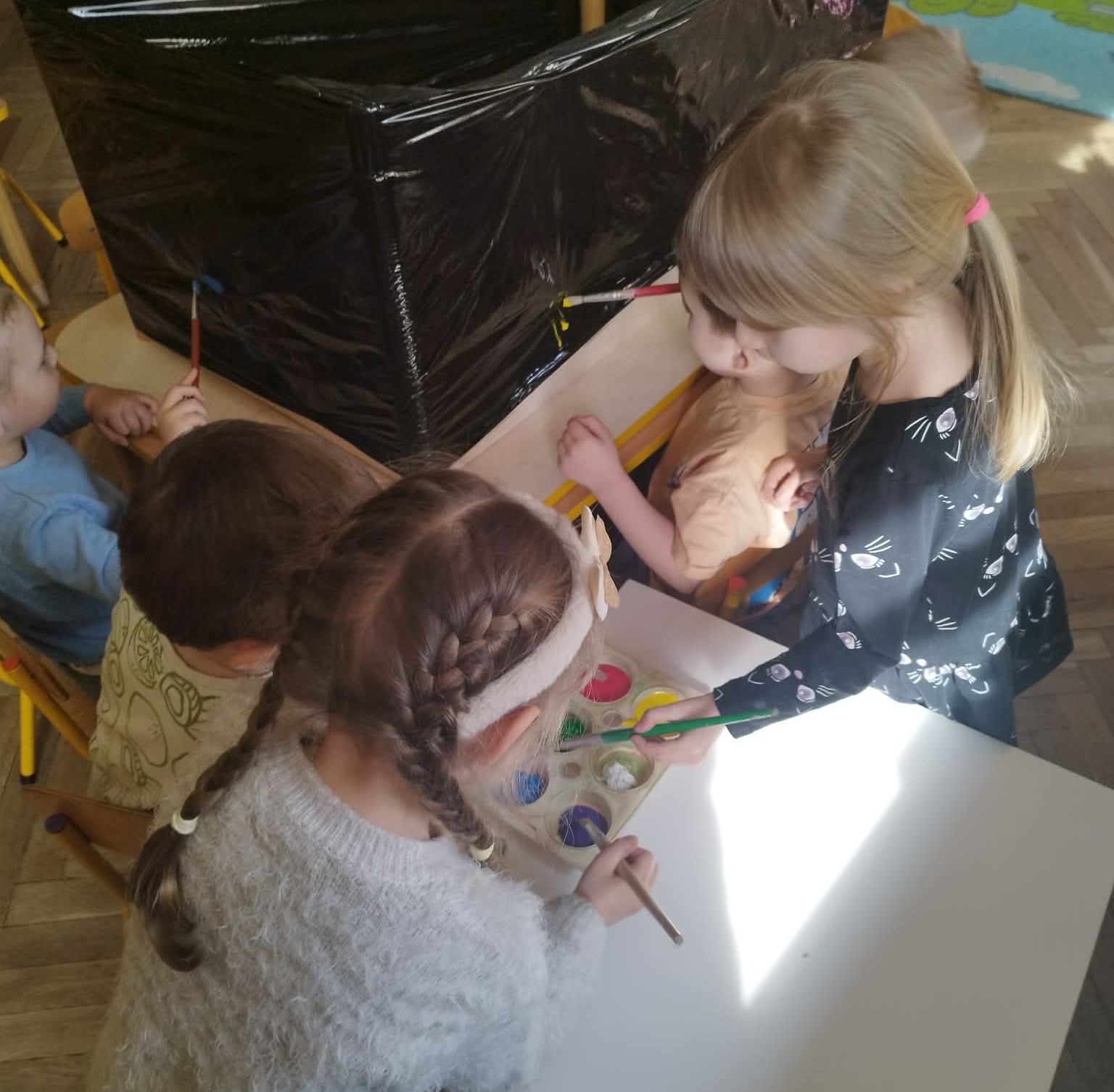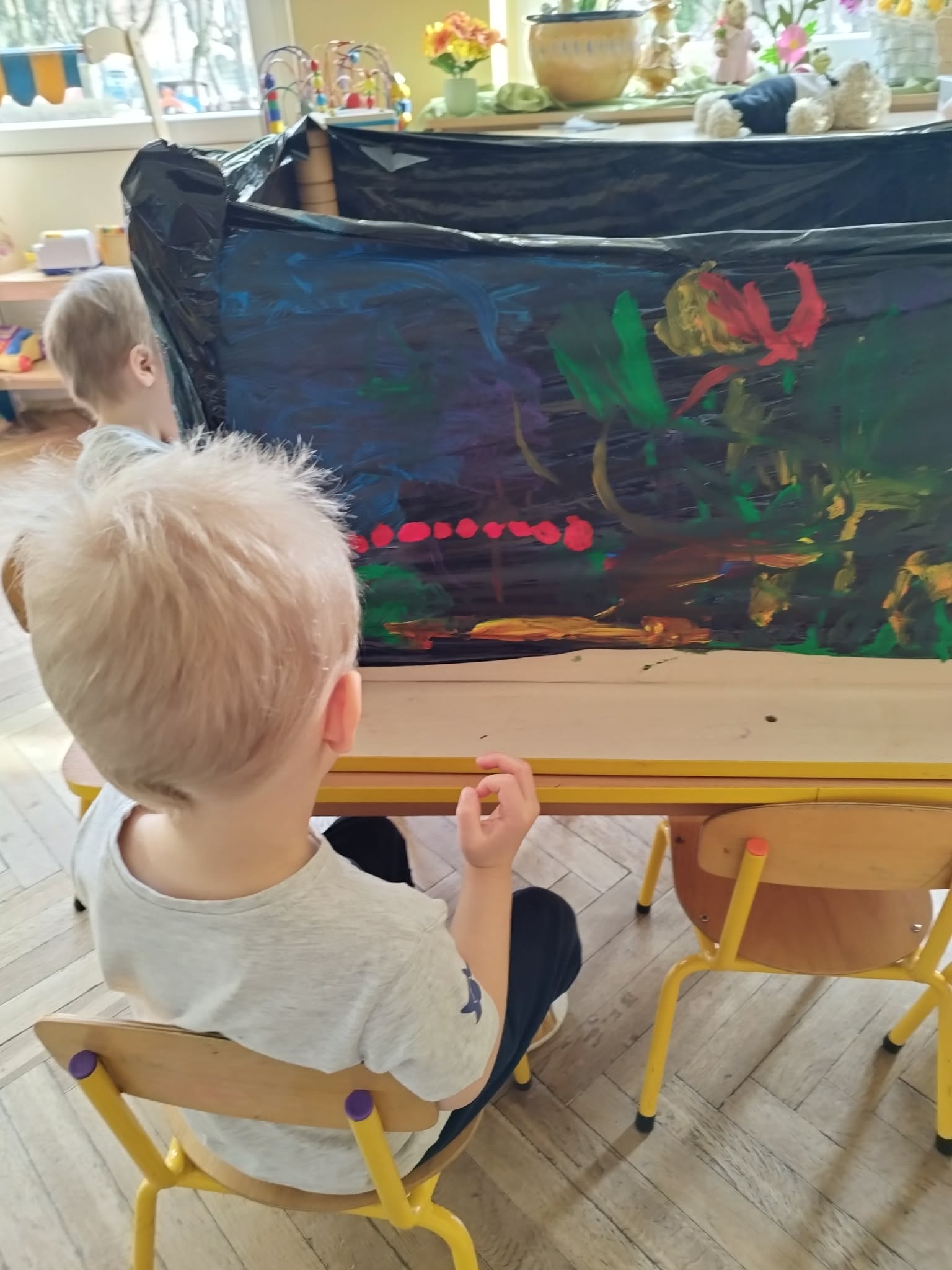 Wiewiórki stworzyły kolorowe, wiosenne prace pełne kwiatów, słońca i kolorów .Była to nie tylko świetna zabawa, ale także doskonała okazja do rozwijania wyobraźni.