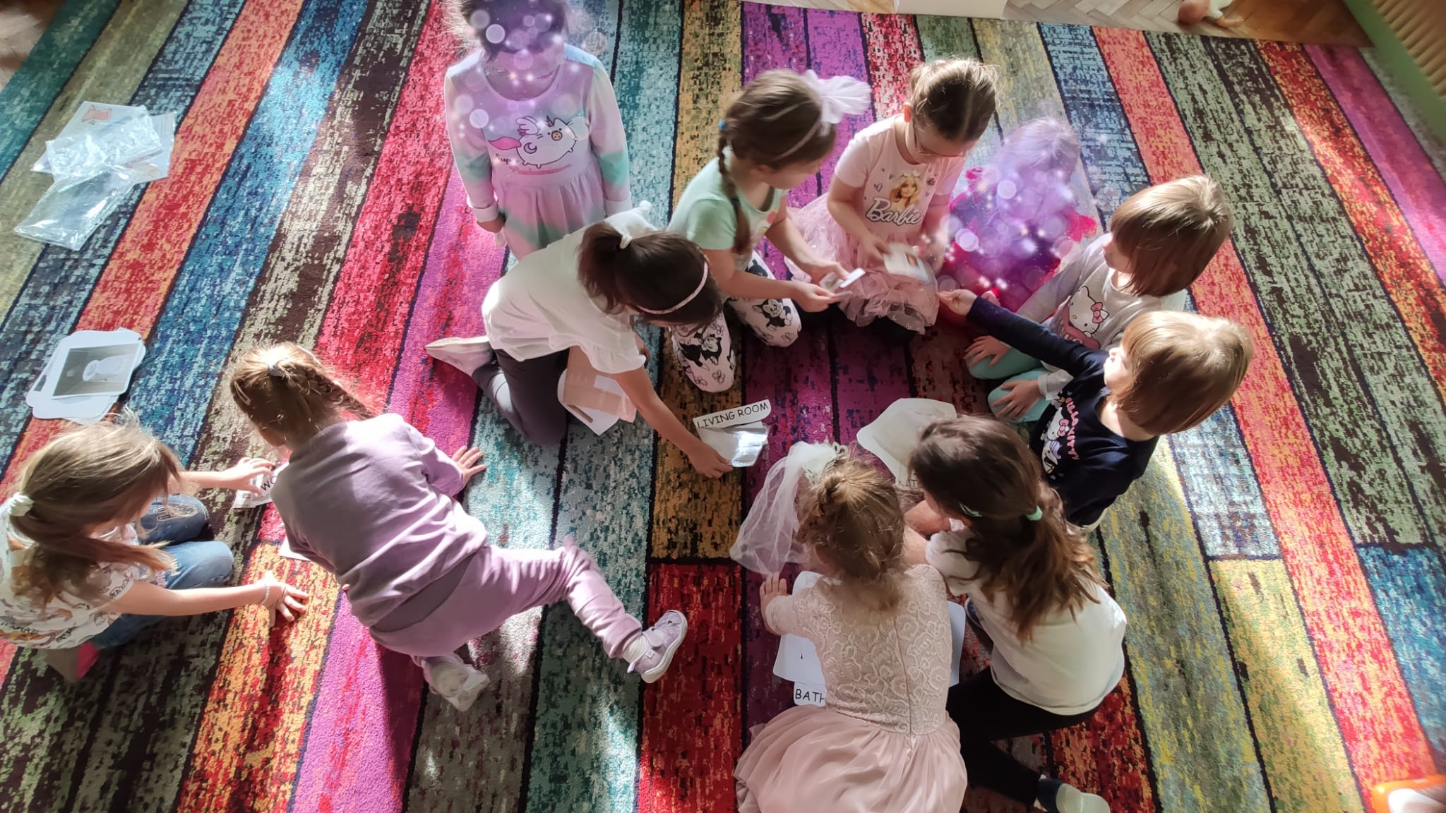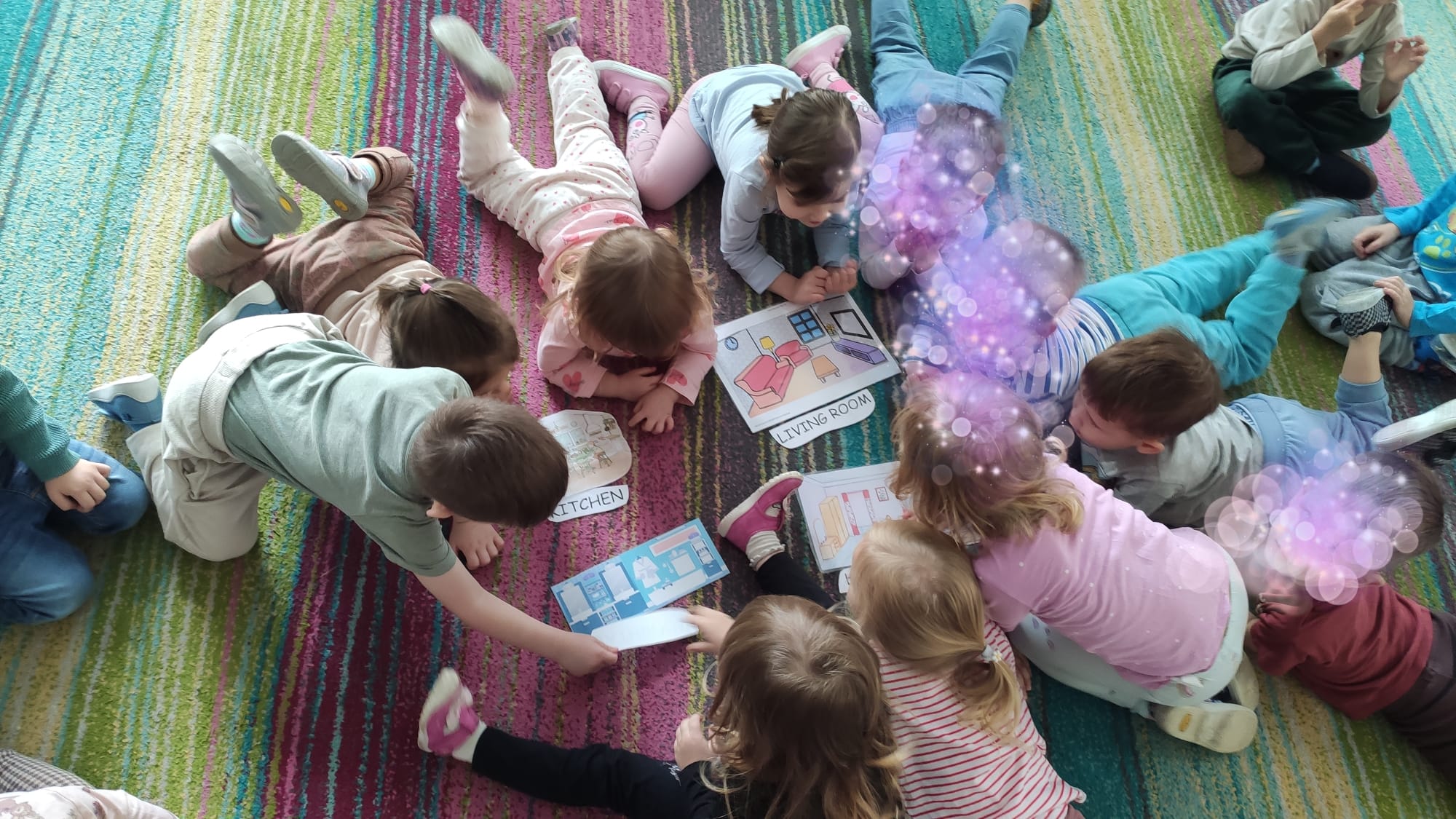 „Parts of the House” – poznajemy dom po angielsku . Nasze przedszkolaki poznawały nowe słownictwo związane z pomieszczeniami w domu. Podczas zajęć języka angielskiego dzieci z zainteresowaniem oglądały materiał edukacyjny, dzięki któremu utrwalały nazwy takich miejsc jak kitchen, bedroom, bathroom czy living room. Zajęcia były pełne ciekawości i aktywności! Dzieci dopasowywały nazwy pomieszczeń do ich ilustracji oraz przyporządkowywały meble do odpowiednich miejsc w domu. W ten sposób nauka nowych słówek stała się prawdziwą przygodą, a nasi mali uczniowie z radością rozwijali swoje umiejętności językowe.
