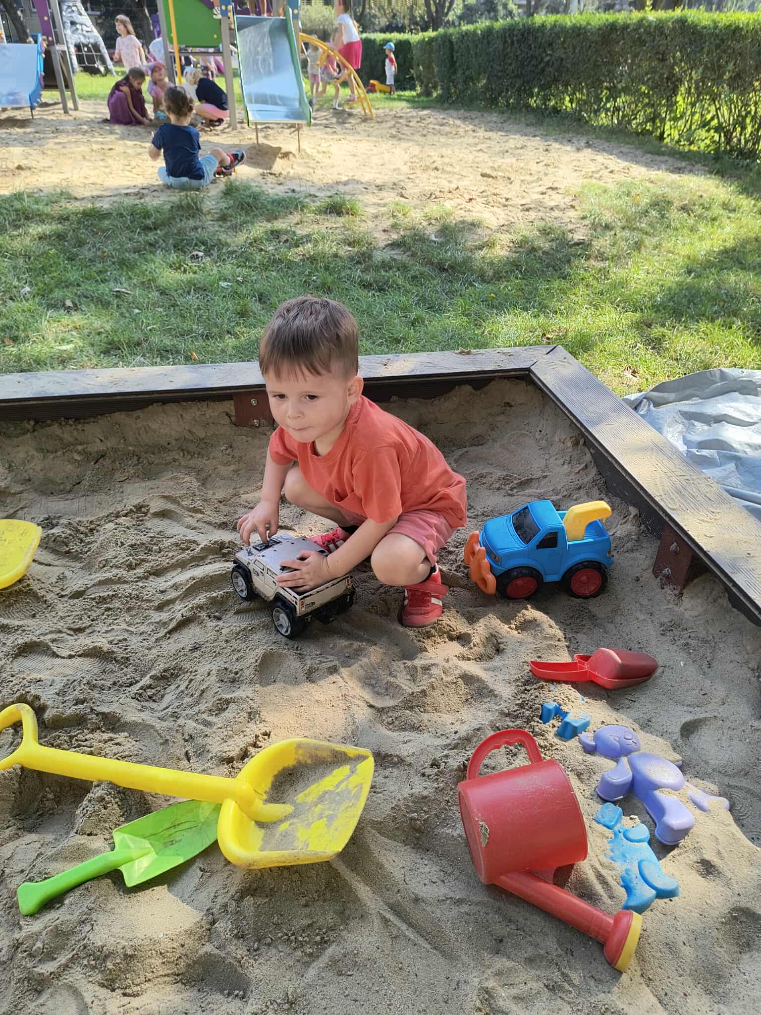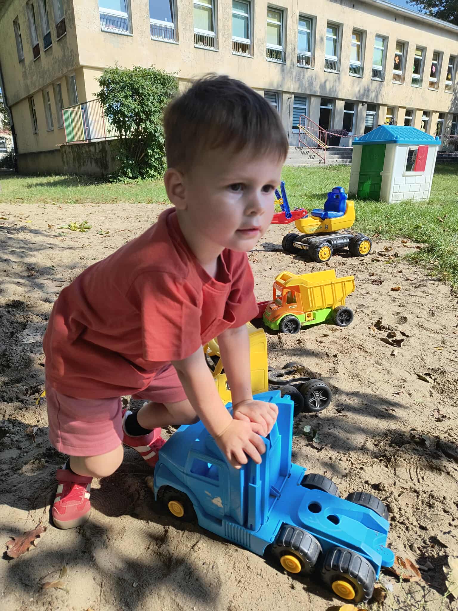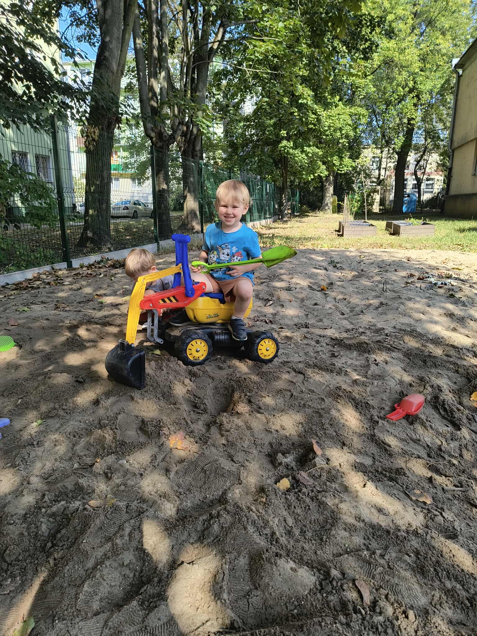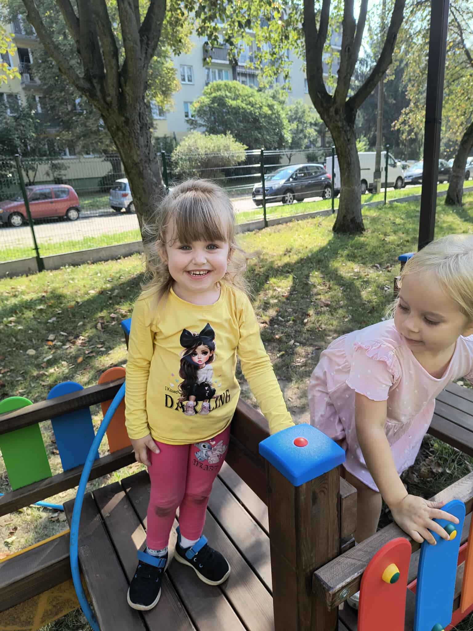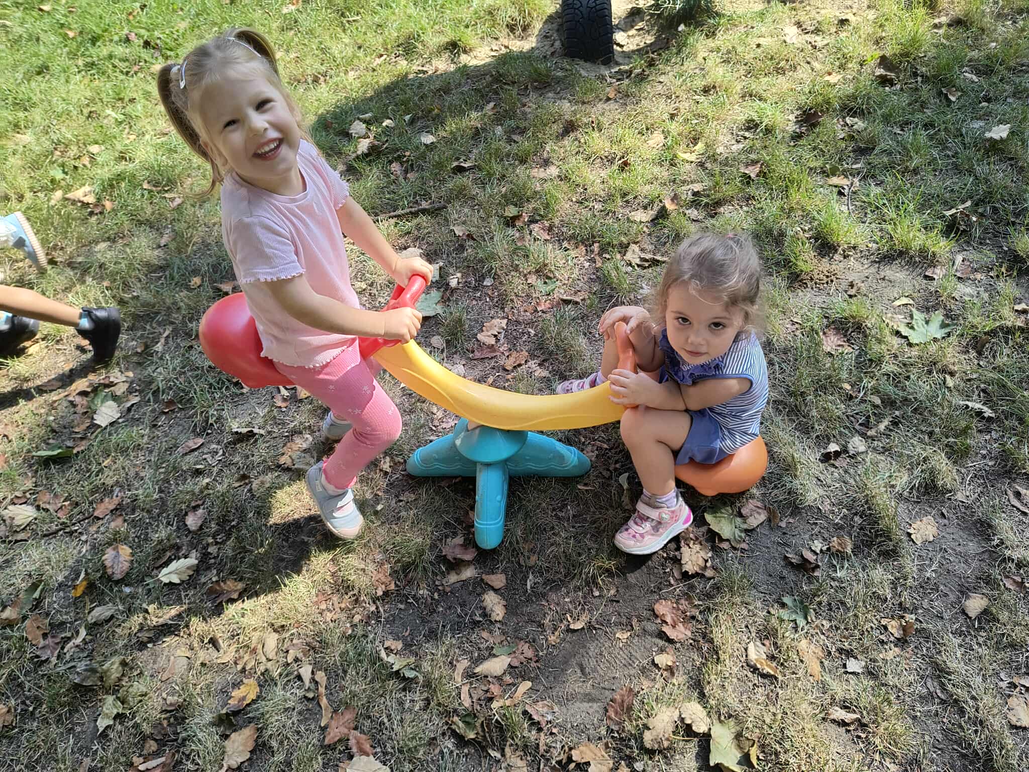 Wesołe zabawy w ogrodzie przedszkolnym.